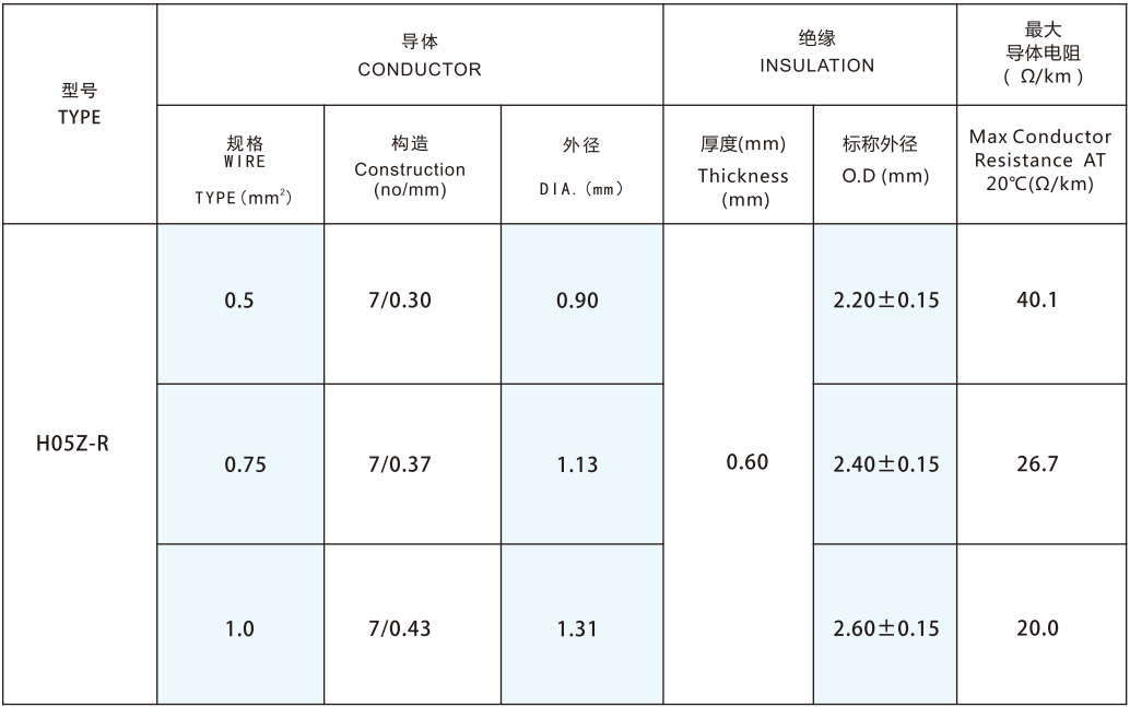 導體采用二類導體0.5-1.0mm2鍍錫或裸銅絲