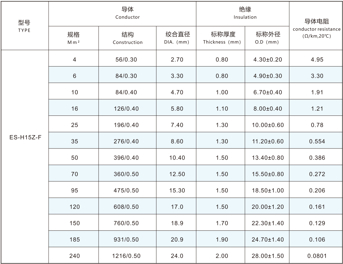 導體采用IEC60228-2004標準第五類或六類導體4.0-240mm2鍍錫或裸銅