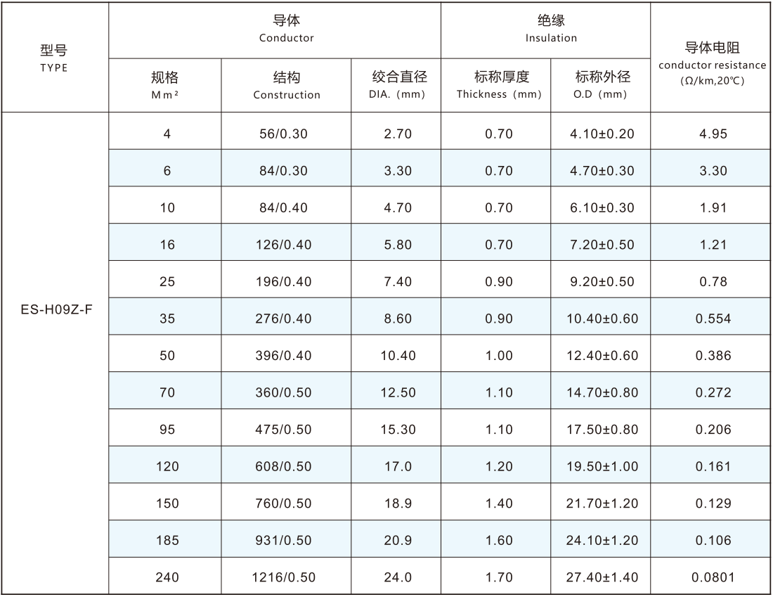 導體采用IEC60228-2004標準第五類或六類導體4.0-240mm2鍍錫或裸銅