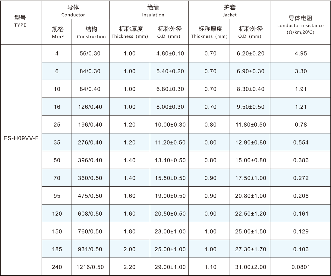 導體采用IEC60228-2004標準第五類或六類導體4.0-240mm2鍍錫或裸銅