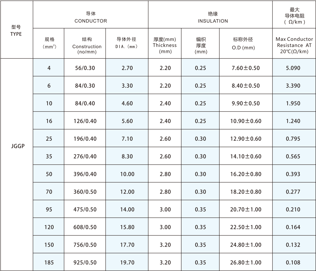 導體采用單根或絞合4.0-120mm2鍍錫或裸銅絲